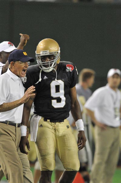 Vickers, who played in seven games for Notre Dame in 1997 and 1998, sealed the win on a 3-yard run late in the third quarter after Michael Goolsby’s interception.