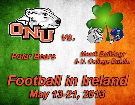 The game will mark the third time that the ONU football team has traveled to Europe to play an exhibition game. The Polar Bears defeated an All-Star club team 77-0 in Furstenfeldbruck, Germany, and downed an Italian All-Star club team 63-6 in Pontremoli, Italy in 2010.