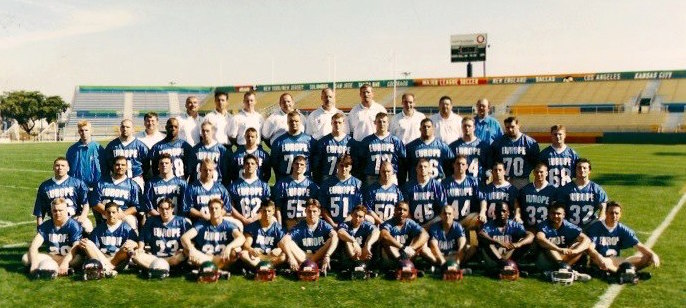 Team Europe (pictured) won the championship at the third attempt at Lockhart Stadium in Fort Lauderdale prior to Super Bowl XXXIII in 1999. Europe eliminated Mexico’s ability to make the big play and roared to a 29-8 win. German Constantin Ritzmann starred in the same week that same week he signed a national letter of intent with defending national college champion Tennessee.