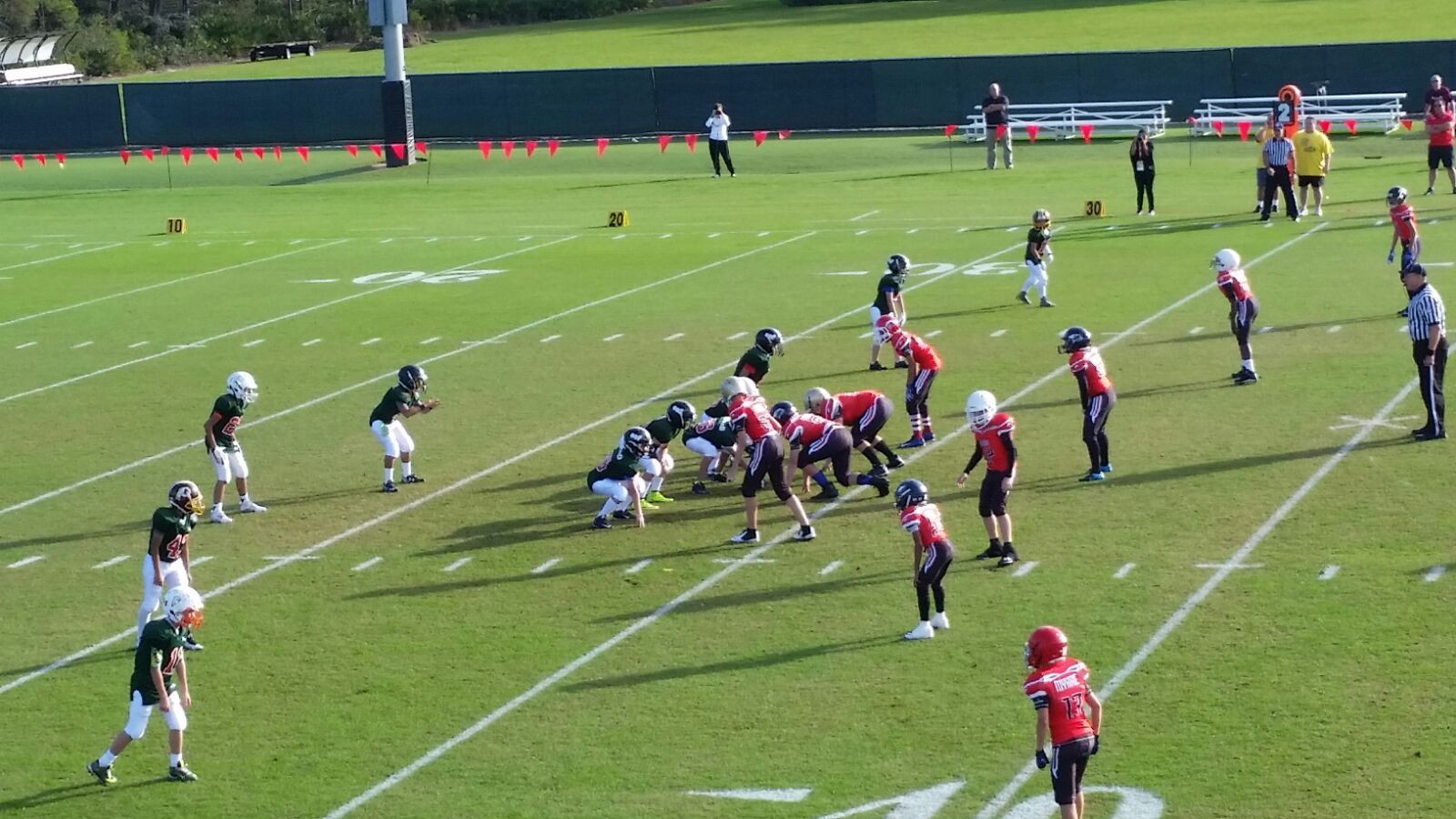 In the Junior Midget Division, with games starting under sunny skies with a light breeze, the EAFL Falcons and Mexico City needed overtime to decide a tie that ended with the youngsters from the United Arab Emirates winning 13-12. Mexico Azul remained unbeaten with a 20-0 win over Mexico City, but then suffered a 6-0 loss to the EAFL Falcons. Azul remained on top of the standings, tied at 3-1 with EAFL, having conceded fewer points in all games.