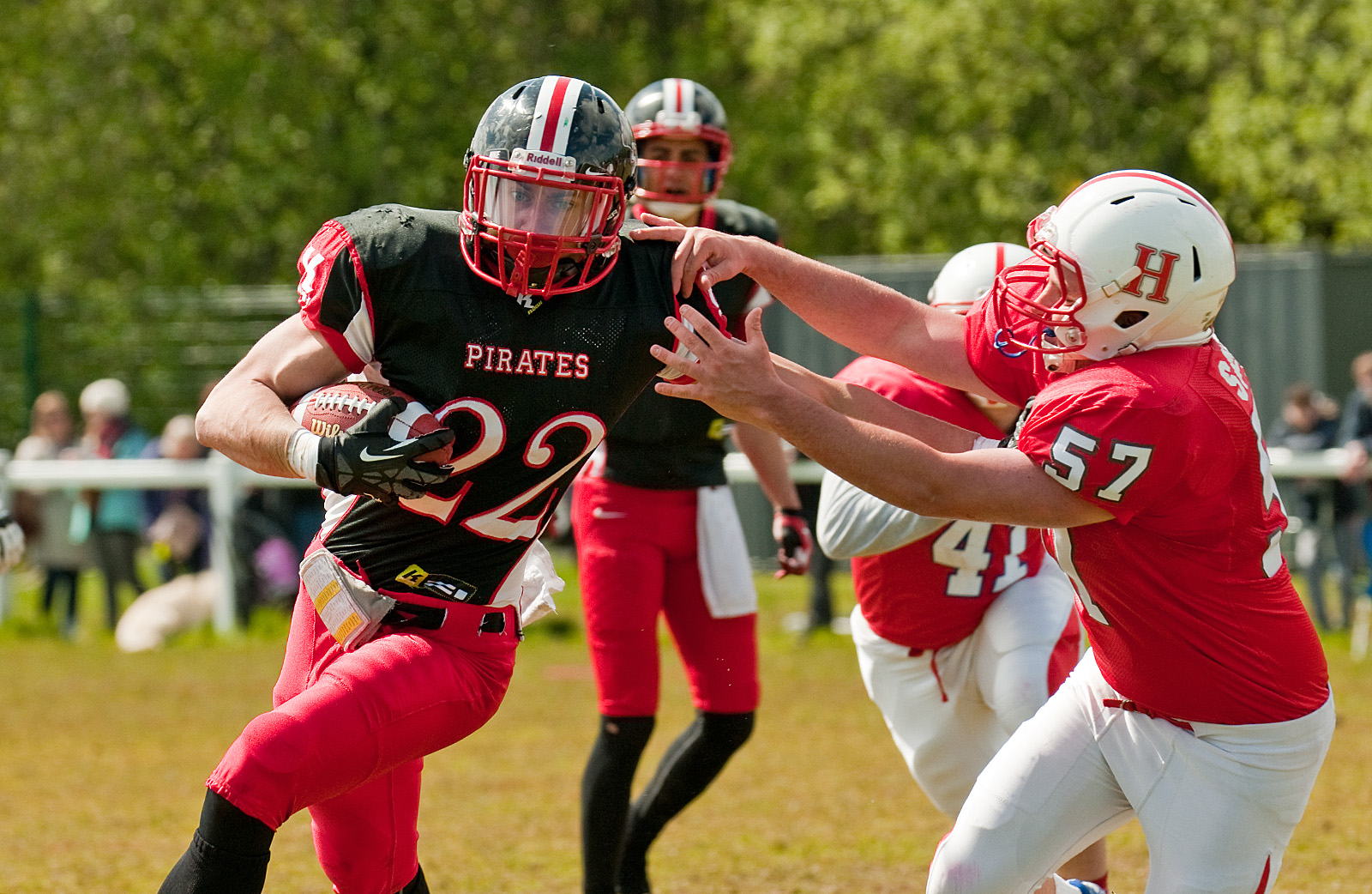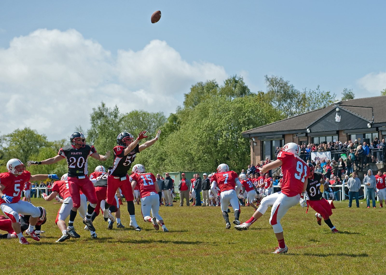 The Scottish hosts put up a brave fight against their American college opponents from Indiana, moving the ball regularly on offense, but were unable to breach the visiting defense. The Pirates saw a field goal attempt bounce agonizingly off the crossbar and held the Panthers to only 18 points in the first half.