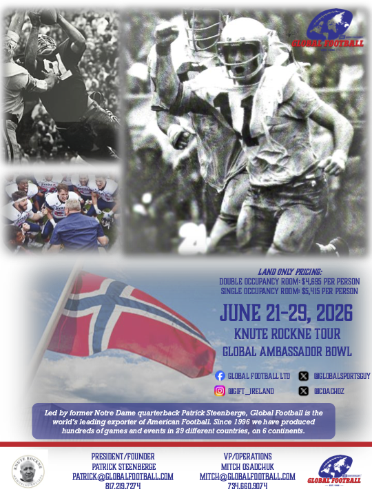 Travel to the birthplace of the legendary Knute Rockne and experience the trip of a lifetime in the country where American football in Scandinavia began.