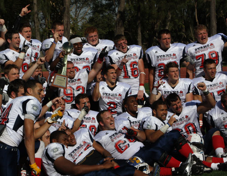 The 16th annual post-season game in Mexico for NCAA Division III stars will feature a Team Stars & Stripes roster again selected from graduating college seniors at the D-III level who will travel to Monterrey for a combination of two-a-day practices with an opportunity to explore the local region before the Saturday game. They will experience the local culture and participate in a community service project. In 2012, the traveling group helped clear an area of land to benefit an impoverished neighborhood to make it more suitable as a play area for the community’s children, and then held a football clinic for local youngsters.