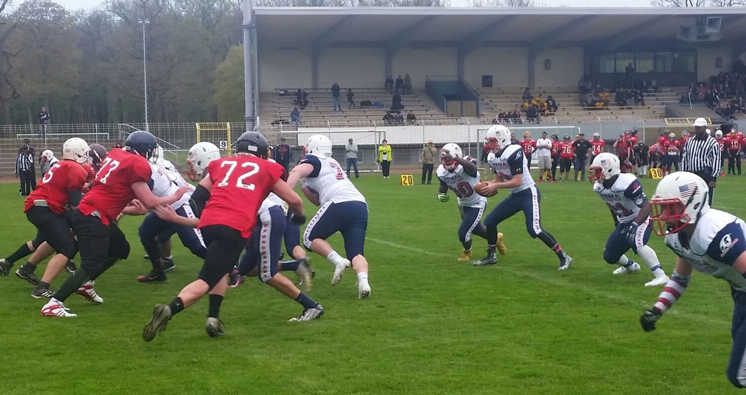The opponent was the Hanau High School All-Stars, a rare concept for the continent where teenage student athletes from a number of area German schools, bolstered by a strong contingent from Belgium and a few American boys for the DoDs schools, strapped on pads under the coordination of Rick Holland. A retired US Army visionary, Holland is making great strides in creating a high school league to help youngsters have an after-school and weekend athletic focus. He and a few of his buddies worked tirelessly to make this game possible, and their passion for football and for youth was evident throughout the day in the stadium area.
