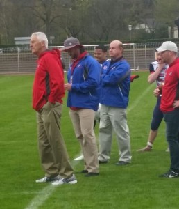 Hanau, Germany- April 9 – After seven days of touring some of the most interesting sites of Prague in the Czech Republic, as well as the medieval walled city of Rothenberg, Germany Team Stars & Stripes got dressed in their red, white & blue pants and jerseys, donned their US flag Riddell helmets and were ready to play ‘American football’.
