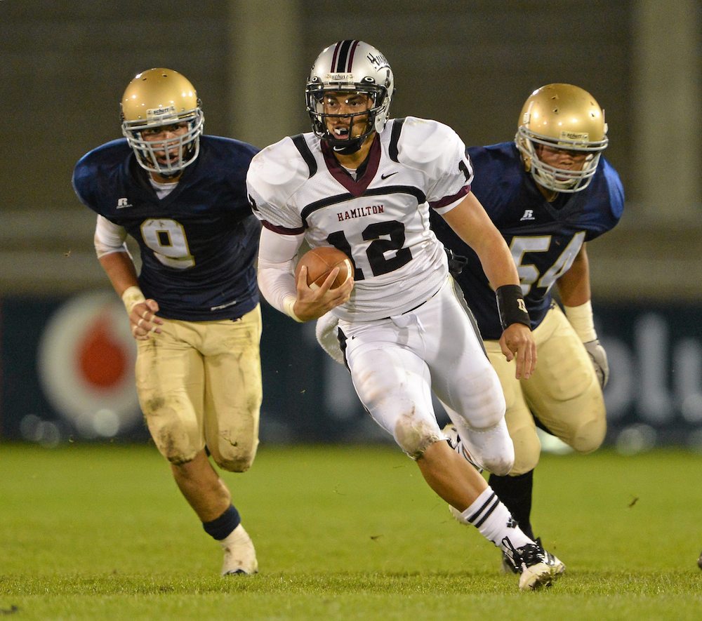 Notre Dame High School football has been one of the most consistently successful programs in the state of California since 1993, and during that time has won 14 League Championships, four CIF Championships and has been CIF runner-up three times. The Sherman Oaks team faced Hamilton High School from Chandler, AZ, one of the top football programs in Arizona that won three consecutive state titles from 2008 to 2010, achieved USA Today Top 10 national rankings, and also reached the state championship game in 2011.