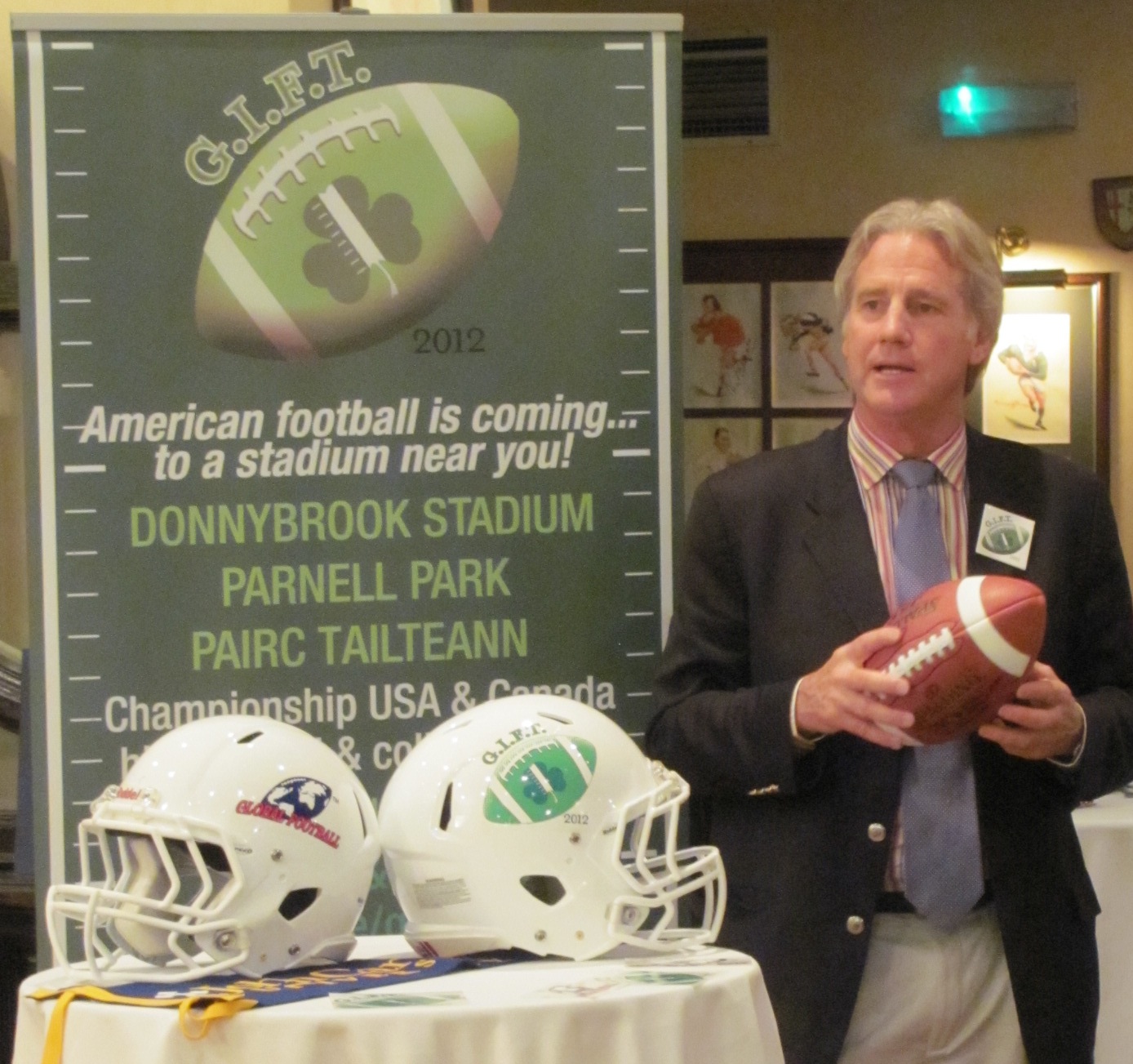 “Putting the sport on people’s doorsteps was very important to us,” Steenberge told the Dublin Gazette at the press conference as he confirmed that U.S. and Canadian high schools and two American colleges would play competitive regular season games at Donnybrook Stadium and Parnell Park in Dublin and Pairc Tailteann in Navan, County Meath.