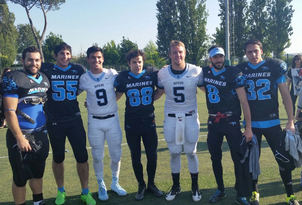 Johns Hopkins traveled to Italy with Global Football, taking in the sights of Rome, Venice and Florence before beating Italian Football League club team the Lazio Marines. Under head coach Jim Margraff, the Blue Jays advanced to the NCAA football playoffs this season, boasting a perfect 10-0 record and a seventh rank, heading into a playoff clash with Randolph-Macon (9-1) this Saturday.